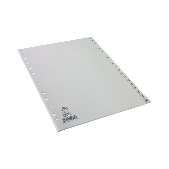 This 20-part numbered polypropylene index is a hard-wearing but affordable choice for organising your files. Made from strong, wipe-clean plastic, these dividers are multi-punched to fit almost any A4 ring binder or lever arch file. Divided into 20 parts – pre-printed with numbers 1-20 – it’s a functional product that’s ideal for organising files in your home or office. There’s even an index page for creating your own at-a-glance overview of your files.