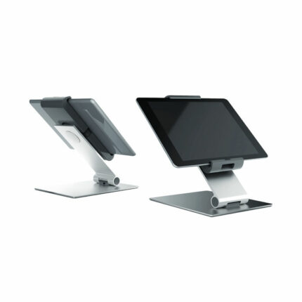 This modern and stylish tablet holder in Silver securely holds tablets from 7 to 13 inches and includes an anti-theft system to prevent unauthorised removal of the tablet. The clamp holds the tablet in place and rotates 360 degrees for use in both portrait and landscape format. Featuring a tilt angle range of 0 to 88 degrees for complete flexibility, it is ideal for use in hotels, exhibitions, trade fairs, restaurants, offices and more. Dimensions: (WxDxH): 270x270x1215mm, the wall stand is made from sheet steel and aluminium for stability.