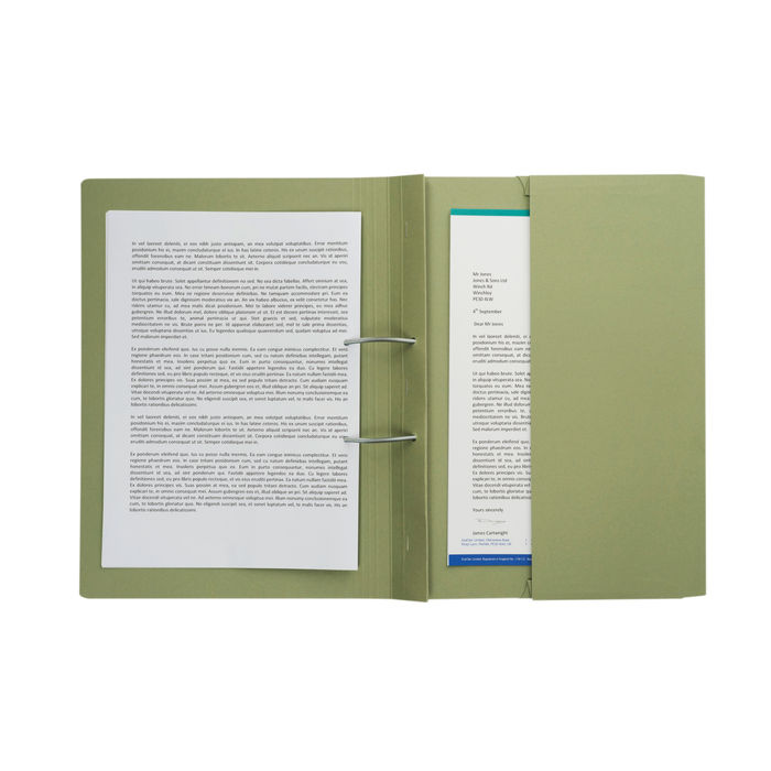This handy Elba Spirosort spring file is ideal for filing punched A4 and foolscap papers with 2 transfer prongs and a compressor bar to hold contents securely in place. The environmentally friendly file is made from 100% recycled 260gsm manilla and has a 20mm capacity for up to 200 sheets. This pack contains 25 green files.