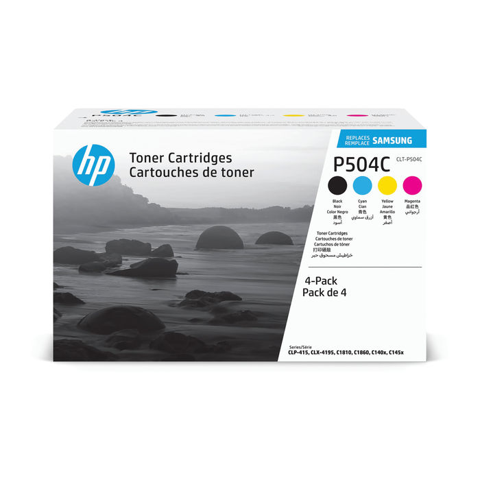 This pack of four HP for Samsung colour and black toner cartridges contains everything you need for quality and reliability in your prints from your CLP-415, CLX-4195, C1810 and C1860 laser printers. Containing 1 each of black, cyan, magenta, and yellow toners, ideal for high volume print users and is cheaper than buying four single toners separately. Each colour cartridge features a yield of up to 1,800 pages, the black cartridge has a yield of 2,500 pages.