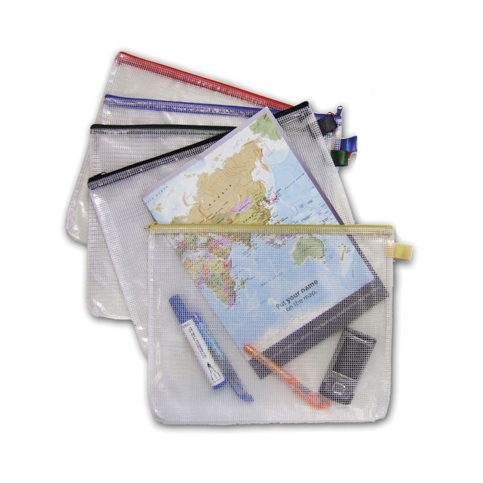 MESH BAG A4 ASTD COLOURED ZIPS PK5