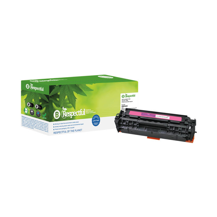 Many people find that Respectful replacements meet or even exceed the performance and durability they have come to expect from the branded equivalent. Why not give one a try? You will be pleasantly surprised by the high colour density and accuracy of reproduction for just a tiny proportion of the price. This magenta cartridge is suitable for the HP LaserJet Pro 300, 300 MFP, 400 and 400 MFP and prints up to 2,600 pages.